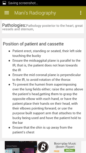 O Mani Radiography é uma ferramenta educacional disponível para Android que facilita a busca e navegação por exames radiográficos. Com uma interface intuitiva, o aplicativo oferece informações introdutórias sobre equipamentos de raios-X e acessórios, além de descrever procedimentos comuns em departamentos de radiologia. O usuário pode acessar detalhes sobre fatores de exposição, colimação, procedimentos, críticas e fotos, tornando o aprendizado mais acessível e prático. Também estão disponíveis demonstrações em vídeo para aprofundar o conhecimento sobre os procedimentos.